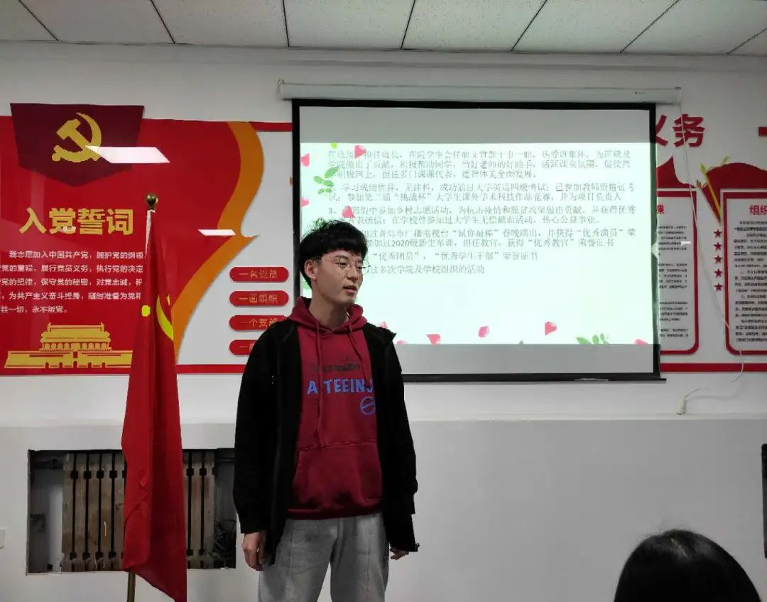 张良院长讲话结束后,竞选大会正式开始。竞选者们从个人简历、学习成绩、获得的成就、对于未来的展望等方面全面介绍了自己,用自己的方式为自己代言。展示的证书表明他们的努力换来了累累硕果,如今他们又向着更高的山峰勇敢攀登。在竞选中竞选者们表达了对于入党的向往,纷纷表示要努力学习,让自己的思想和行为都努力向党组织靠拢,争取成为一名光荣的共产党员。