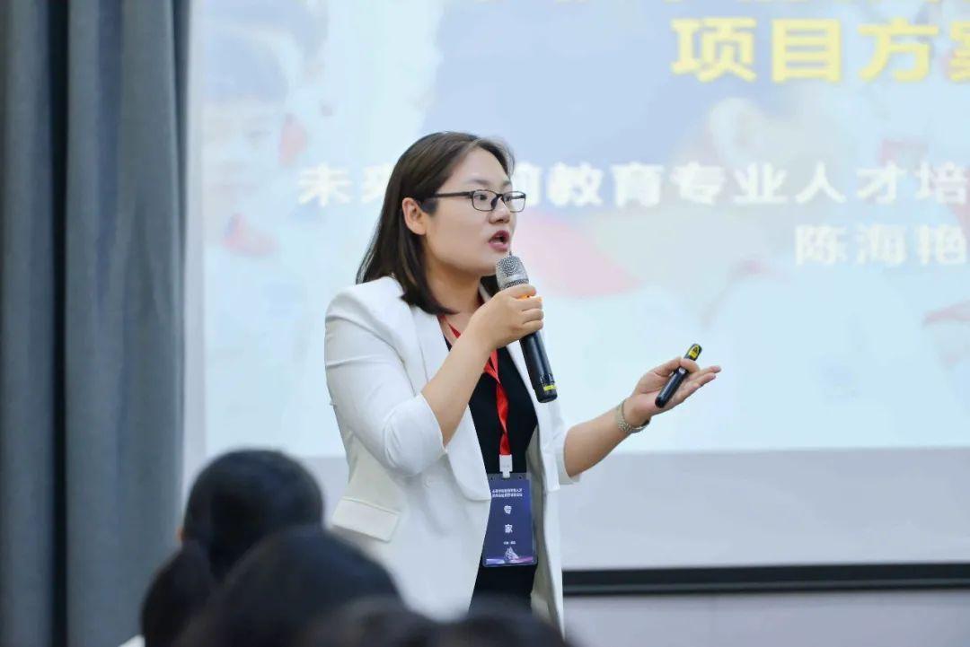 论坛会上,未来学校学前教育专业人才研究院执行院长、青岛恒星科技学院校长助理陈海艳对未来学前教育专业人才培养实验项目专项课题计划和任务进行了讲解说明。陈院长从未来学前教育专业人才培养研究院基本情况、体系和资源建设、研究基地建设标准、案例分析和第二阶段拟发布课题论坛等六个方面对与会嘉宾进行了详细介绍。陈院长表示,希望通过行业、高校对幼教机构实现赋能,通过未来学前教育人才培养课题论坛会平台与各园所的领导和一线教师专家进行深度学习交流、分享互鉴,更希望可以通过本次论坛会与高校、行业、幼教机构相互分享有关未来学前教育专业人才培养研究成果和经验。