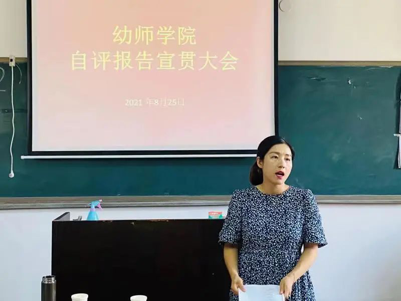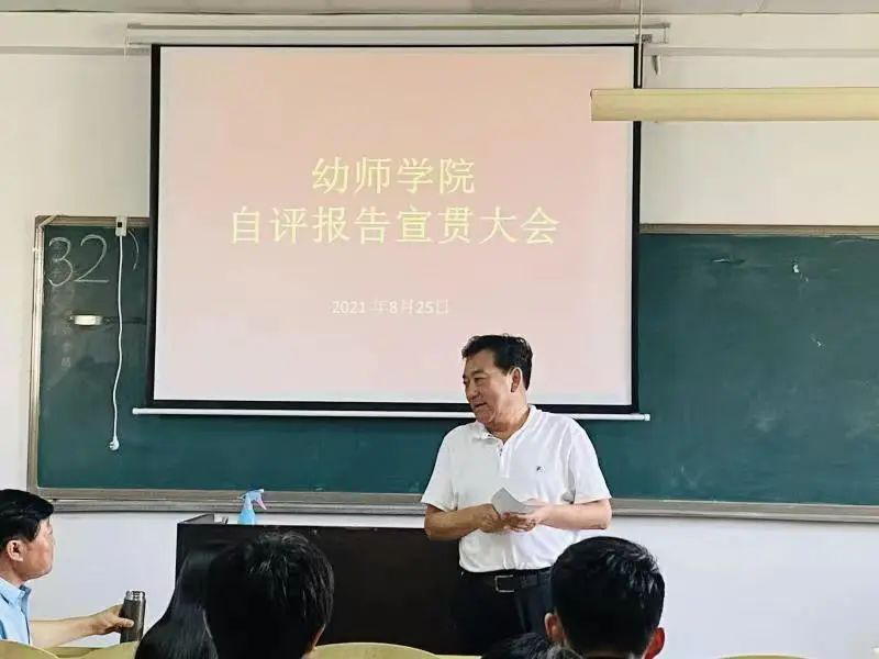 2021年8月25日下午,青岛恒星科技学院教育学院在A4-701召开了自评报告宣贯大会,贯彻落实自评报告内容,齐心协力共迎评估。出席大会的有青岛恒星科技学院副校长张凤东、教育学院院长王冰院长、教育学院副院长单菁华、教育学院副院长张良,大会由单菁华副院长主持,教育学院全体教职工参与学习。张凤东副校长对我院的工作部署进行了指导,王冰院长带领教育学院全体教职工进行自评报告学习和解读。