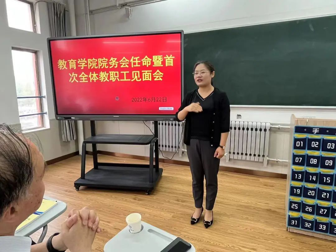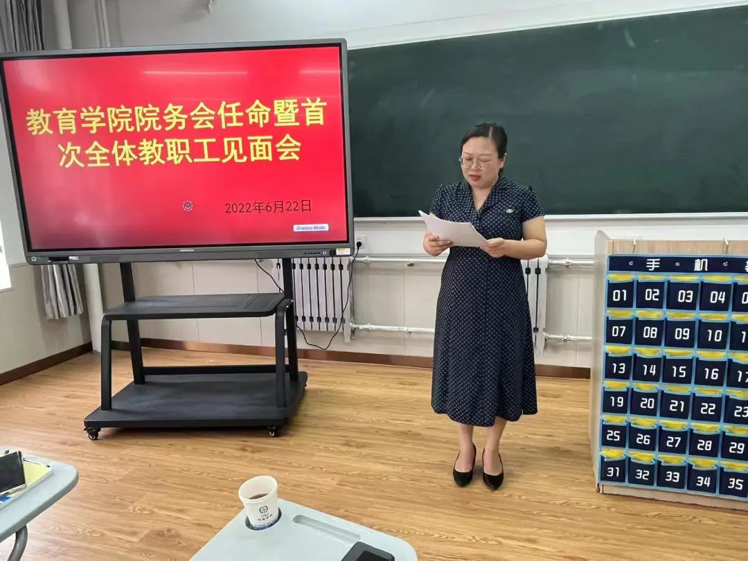 教育学院院务会任命暨全体教职工首次见面会的成功举行,揭开教育学院管理的新篇章。教育学院全体教职工将在新领导班子的带领下,在校党委的坚强领导下,同心同德、连续奋斗,与时俱进、锐意创新,以更加奋发有为的精神状态,更加求真务实的作风,更加扎实有效的工作,不断创造经得起实践检验和群众检验的业绩,为建设行业特色鲜明的应用型本科院校做出应尽的贡献。