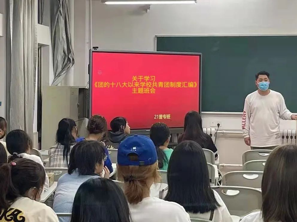 为完善同学们对思想政治教育和团的基本知识教育认知,提高同学们思想理论水平和政治素质,2021年10月13日,青岛恒星科技学院教育学院各班级开展关于学习《团的十八大以来学校共青团制度汇编》的主题班会。