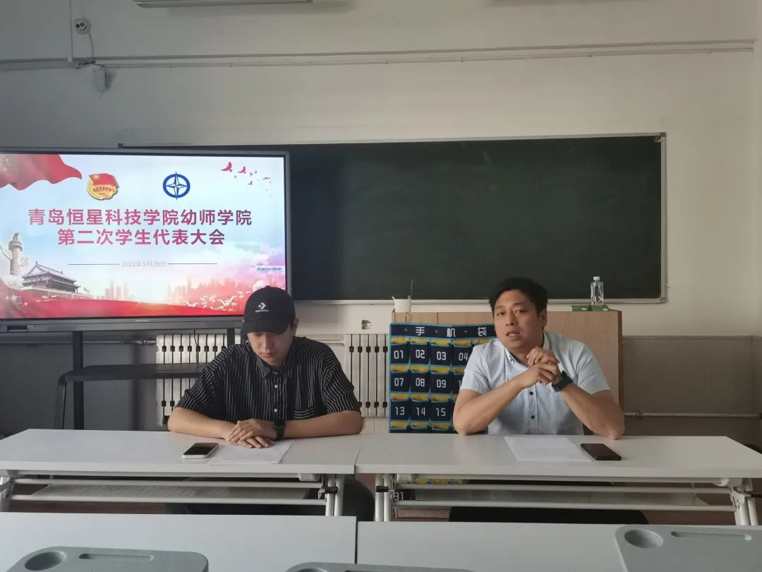 为了充分体现学生组织的先进性和科学性,积极鼓励同学们参与到社会主义民主政治中,青岛恒星科技学院教育学院于2022年5月28日在A2-205召开第二次学生代表大会,教育学院副院长张良、教育学院辅导员王昱涵和教育学院学生代表参会。会议由教育学院学生会副主席李洪飞主持。