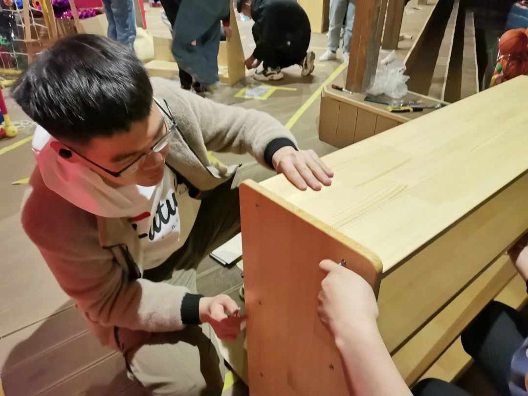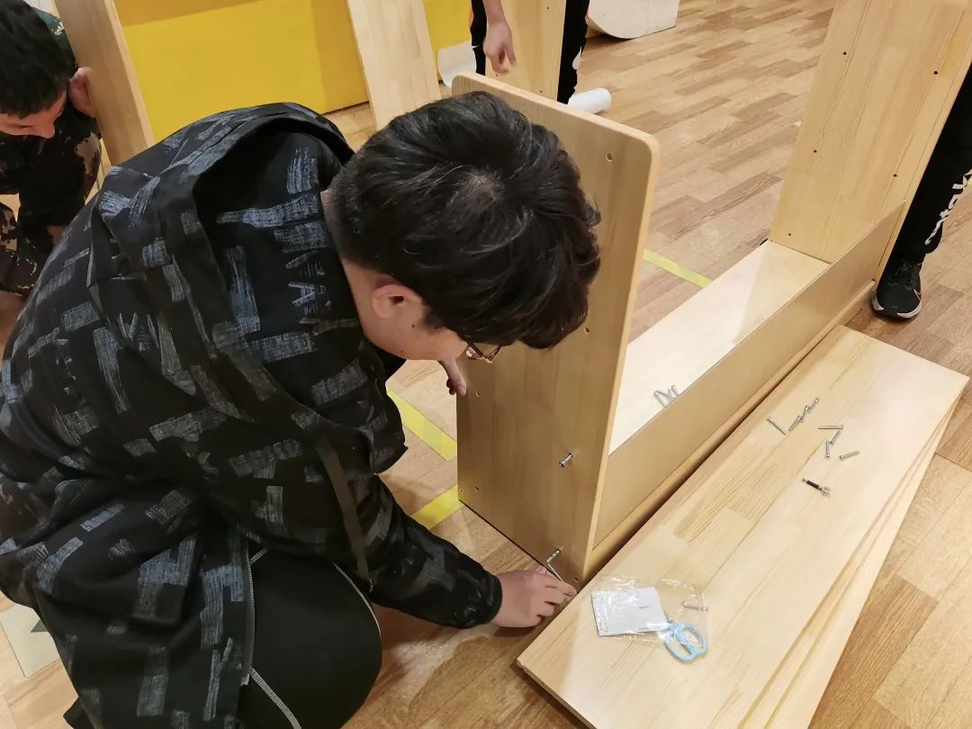 组装小桌子、小橱柜,擦洗毛巾架,帮小朋友的篮球打气,整顿校园绿植……此次活动,同学们相互协作,在帮助别人的同时也加强了自身交往和朋友的关怀,得到了大家的一致认可和赞许。