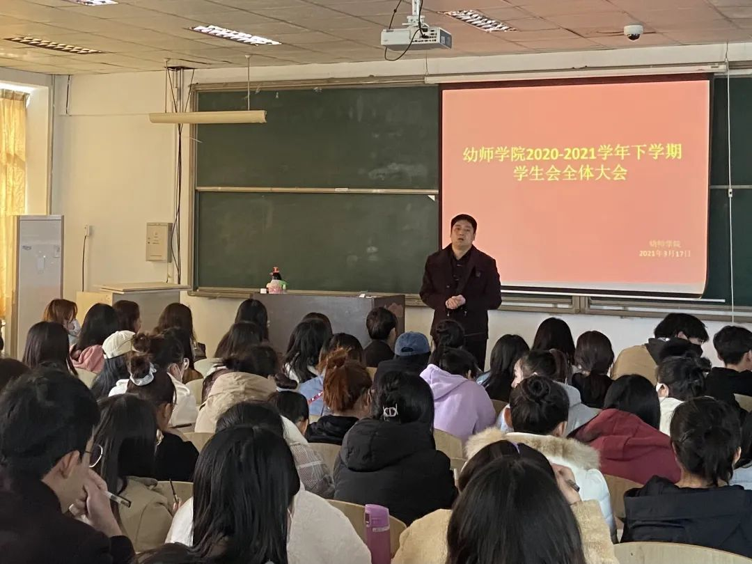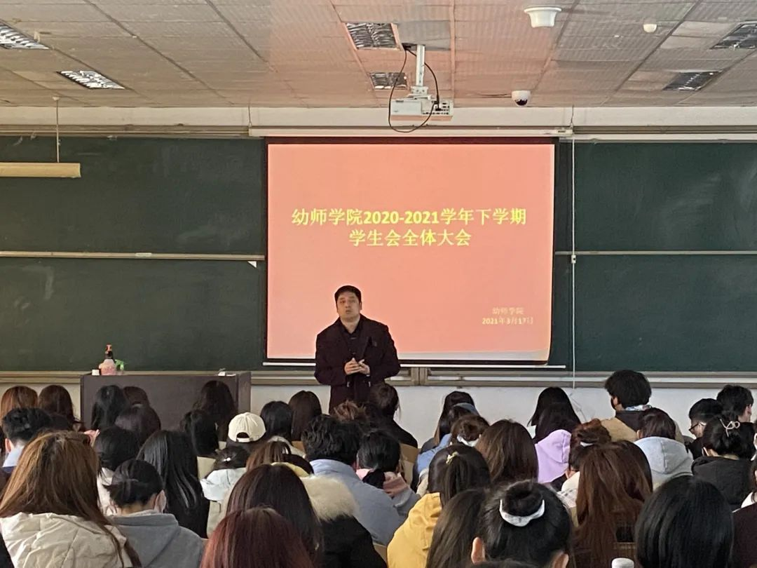新学期,新气象。为更好的统筹安排学生会工作,青岛恒星科技学院幼师学院于2021年3月17日中午在A4-702召开全体学生会大会。张良院长就以下几方面做出安排和要求。