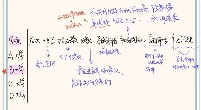 A1:选择大于选择,要选择适合自己的学校,首先要对自己有清晰的认知,针对自己的情况进行选择。你是以什么为导向,是只上岸还是考好的。依据这一个前提,对地区,学校层次,分数,招生人数等按自己优先级排序,再看是否保护一志愿,是否歧视,复试初试占比等等综合选择。锚定一个目标,冲就完了。