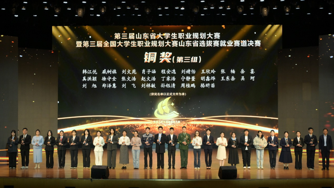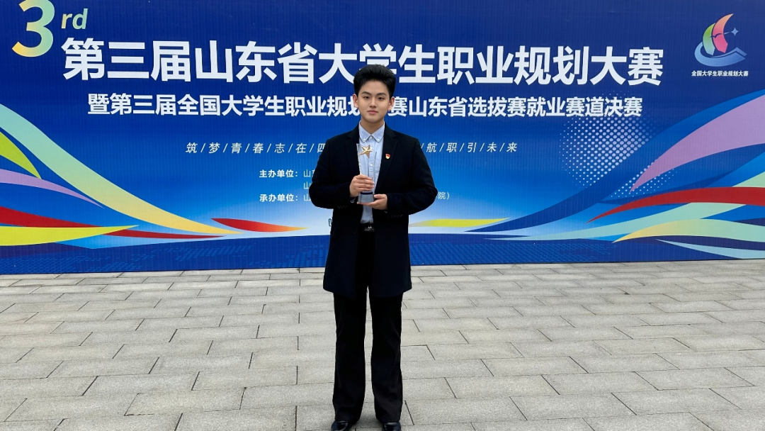 近日,第三届山东省大学生职业规划大赛暨第三届全国大学生职业规划大赛山东省选拔赛各赛道决赛圆满收官。我院学生赵文浩凭借扎实的专业素养、清晰的职业规划和精彩的现场展示,在全省百余所高校的激烈角逐中脱颖而出,荣获就业赛道铜奖!