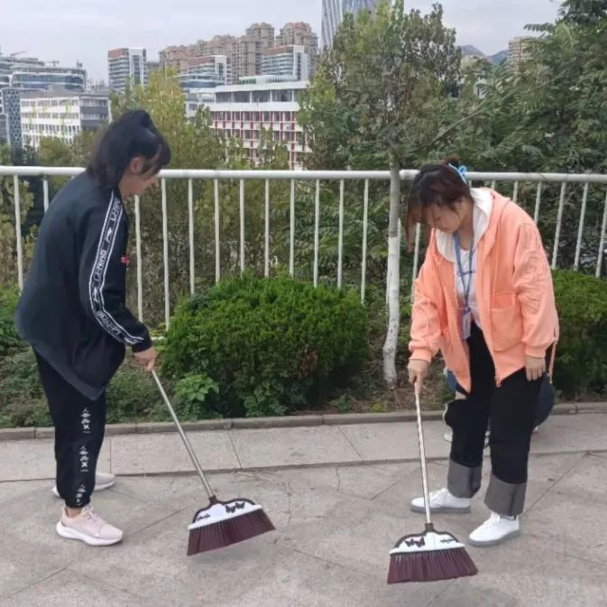 文园图书广场的“图书”二字,分别指“河图”和“洛书”,为中华文化之源,在这个书香满溢的广场进行劳动教育可为美差。学生干部们打扫地面、清理草丛、擦拭座椅…在劳动过程中,大家组织有序,分工明确,行动有力,各部门、成员之间配合密切,积极完成各个角落的卫生清理,在大家的共同努力下,文园图书广场变得干净又整洁!