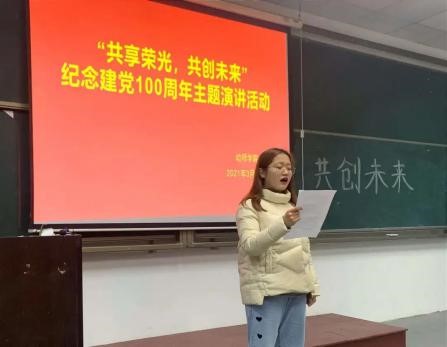为了庆祝国家建党100周年,增强同学们对党的认识和爱国主义情怀,青岛恒星科技学院幼师学院于2021年3月14日在A4-702举行了以“共享荣光,共创未来”为主题的演讲活动。幼师学院20级共派出15名代表参加此次演讲初赛。