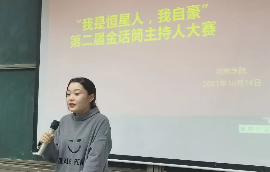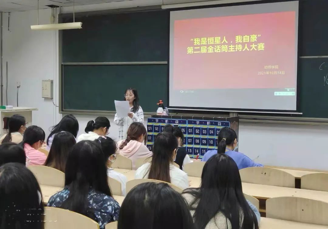 经过激烈的比赛,评委们根据选手们的仪容仪表、普通话朗读,自信程度等方面分别进行了打分,学前教育2101班童桢荣获第一名,同时也涌现出了很多优秀且各有特色的主持人们。快乐的时光总是那么短暂,精彩的过程映在我们的脑海中。各位选手不仅各具特色,声音洪亮,而且还情真意切地表达了自己对恒星的爱。